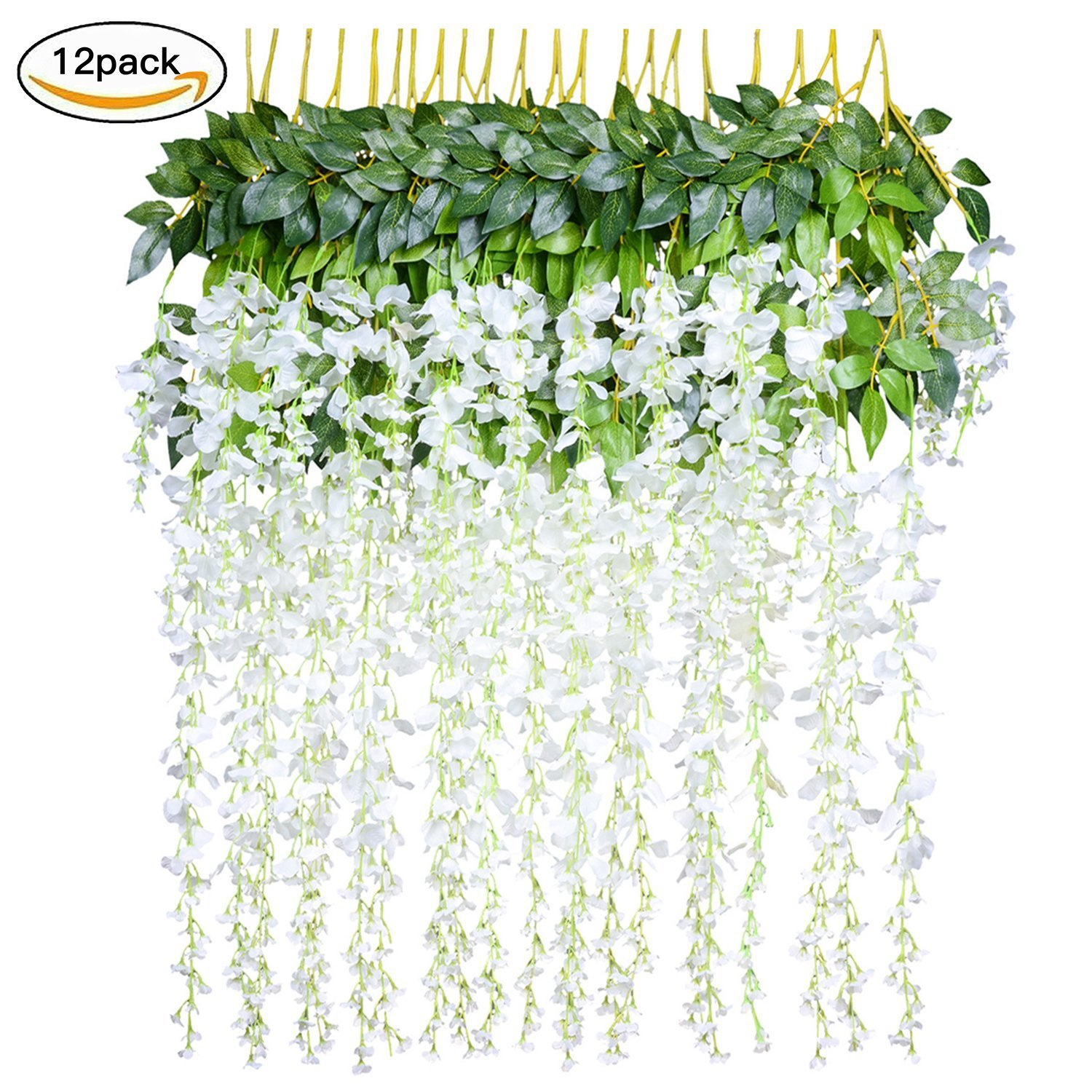 12 Pack Artificial Fake Wisteria Vine Ratta Hanging Garland Silk Flowers String Home Party Wedding Decor White Walmart Com